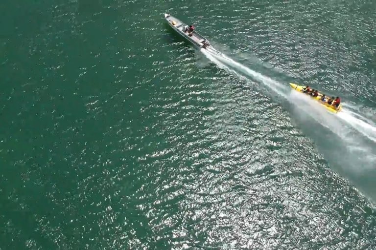 Um Banana Boat é um barco inflável rebocado que acomoda de 3 a 10 pessoas. Todos devem usar colete salva-vidas por razões de segurança.